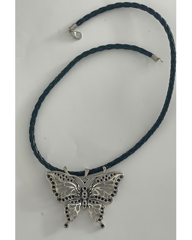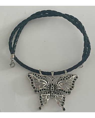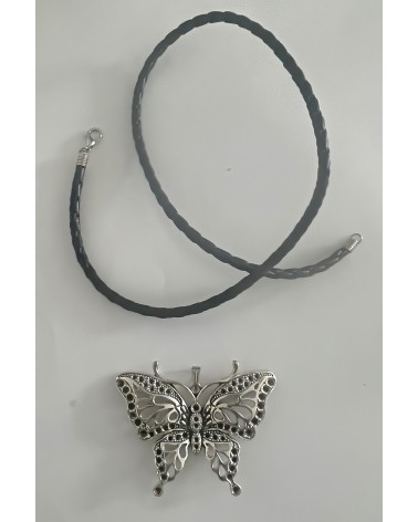 Lieferzeit ca. 5-7 TageHalsschmuck, Zink versilbert (garantiert Blei-, Nickel- und Kadmium-frei) mit geflochtenem Kunstlederband (Stärke 3mm, Länge 45cm inkl. Feinjustierungskette à 5cm).