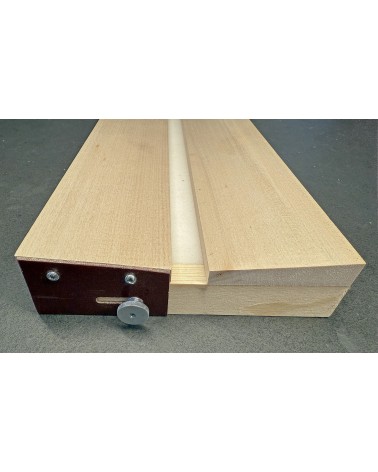 They are made from lime wood in protected Swiss workplaces and are equipped with a self-designed, double-sided guide that allows smooth adjustment of the body channel without the potential for jamming. They are fixed on both sides using chrome-plated knurled screws.
